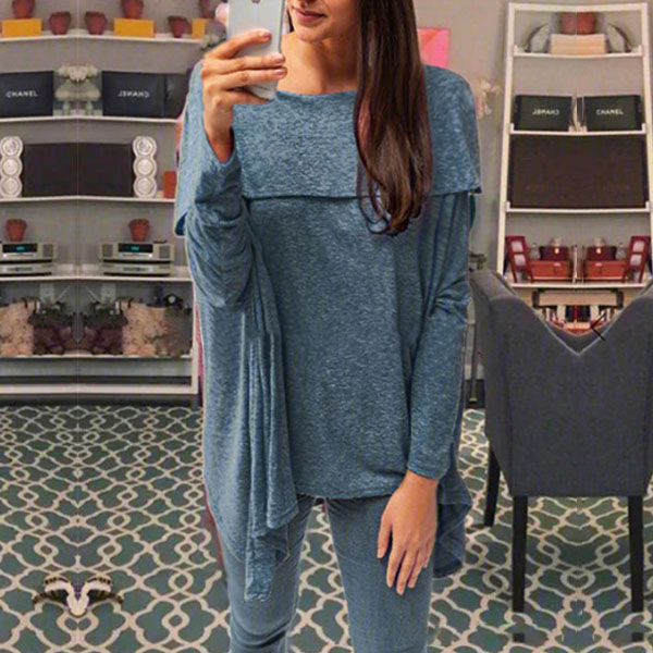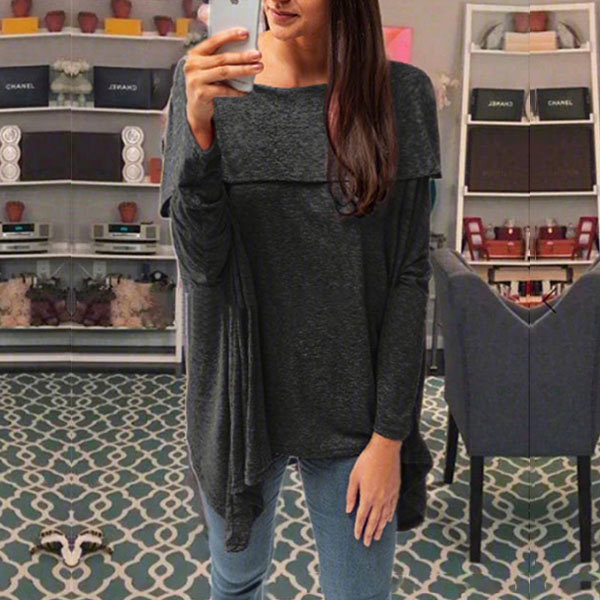 Fashion Long Sleeve Round Neck Irregular Hem T-shirt