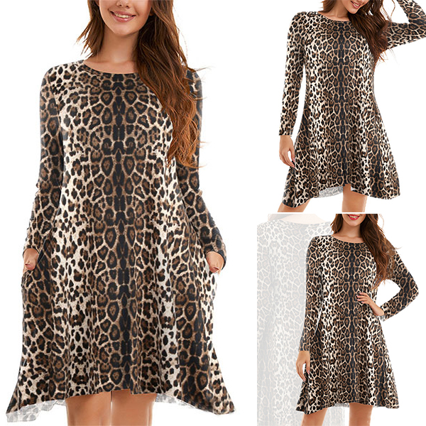 As we all know,the leopard print element stands for the femininity. So you can just slip into this leopard printed dress to showcase your charming feminine appeal. Finished with long sleeve and round neck design,this dress can give you a perfect transition from your daytime out to night dating!