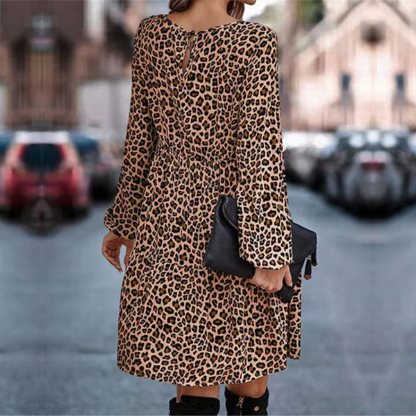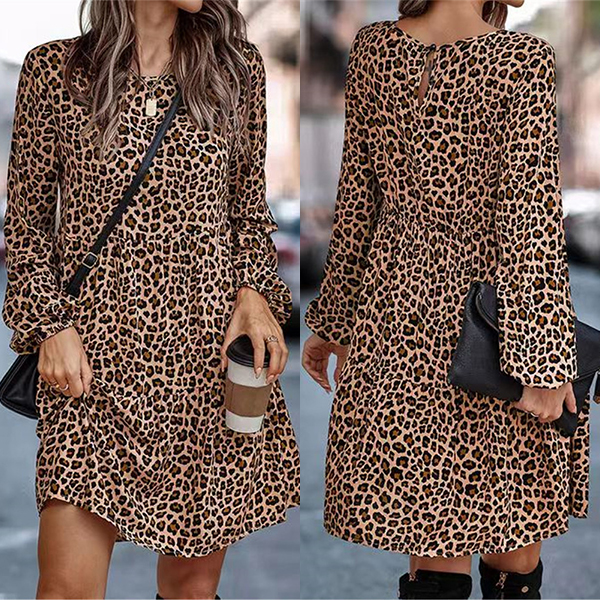 When the autumn season hits,this sweatshirt dress can easily strike your mind. The leopard printed details make it look so eye-catching. Crafted from soft and breathable fabric,with long sleeve and round neck design,this piece can make you look effortlessly charming and beautiful by teaming with your over-the-knee boots.
