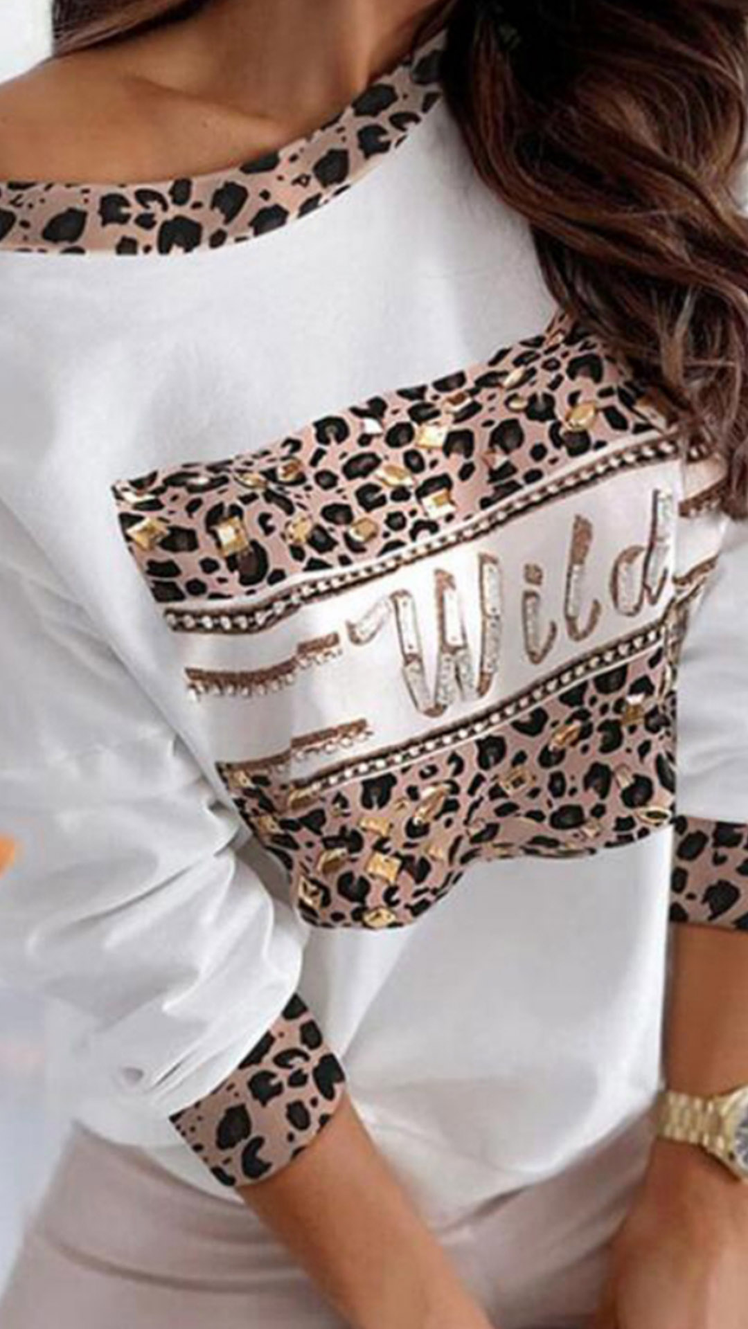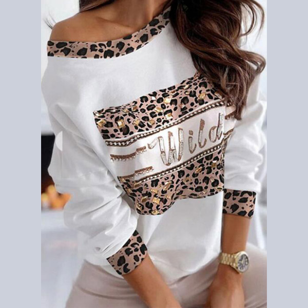 Fashion Long Sleeve Round Neck Leopard Printed T-shirt
