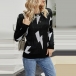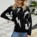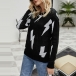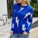 Fashion Long Sleeve Round Neck Lightning Printed Knit Top