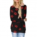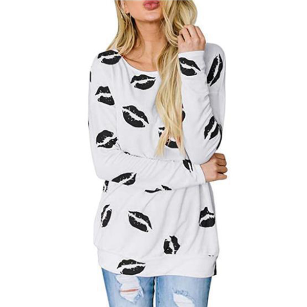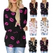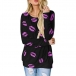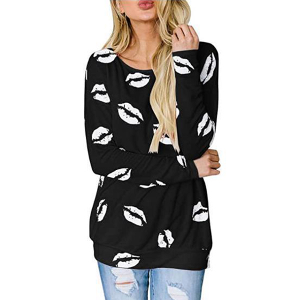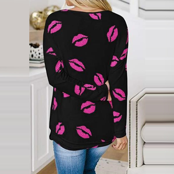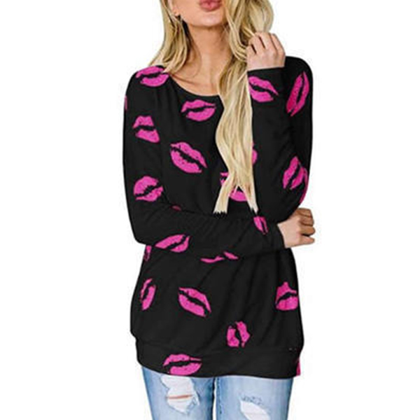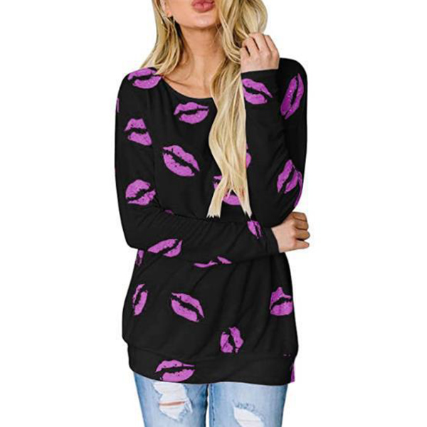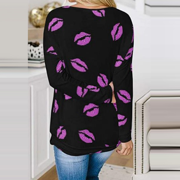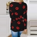 Fashion Long Sleeve Round Neck Lips Printed T-shirt