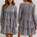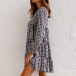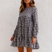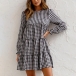 Fashion Long Sleeve Round Neck Loose Plaid Dress