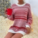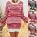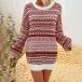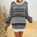Fashion Long Sleeve Round Neck Loose Printed Knit Sweater Dress