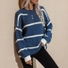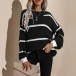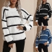 Fashion Long Sleeve Round Neck Loose Stripe Sweater