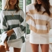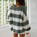 Fashion Long Sleeve Round Neck Loose Striped Knit Top