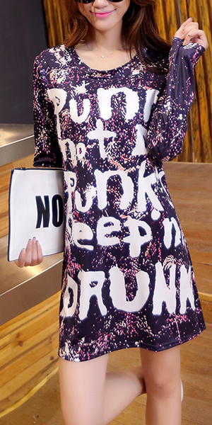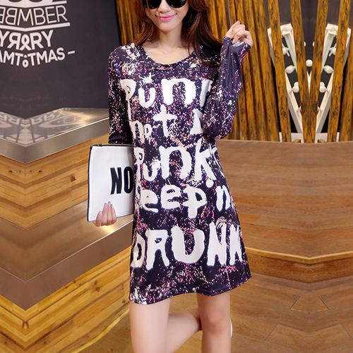 letters printed,with long sleeve and round neck design,simple but elegant. Wanna a charming look? It is so