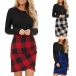 Fashion Long Sleeve Round Neck Plaid Spliced Hem Slim Fit Dress