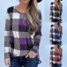 Fashion Long Sleeve Round Neck Plaid T-shirt