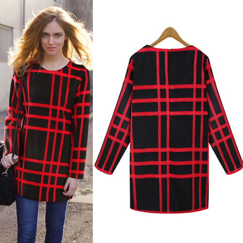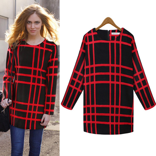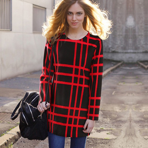 Plaid pattern,with long sleeve and round neck design. Easy to match. Charming and eye-catching.