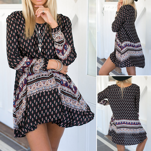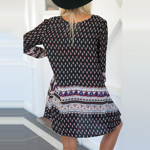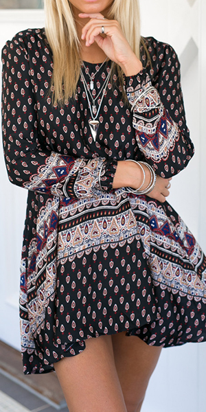 This printed dress is a must-have item for your seaside trip. It features chic printed pattern,