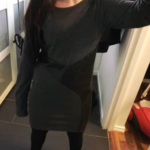 Fashion Long Sleeve Round Neck PU Leather Spliced Dress