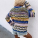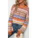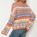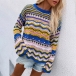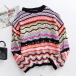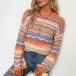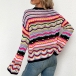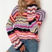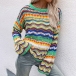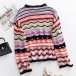Fashion Long Sleeve Round Neck Rainbow Stripe Knit Sweater