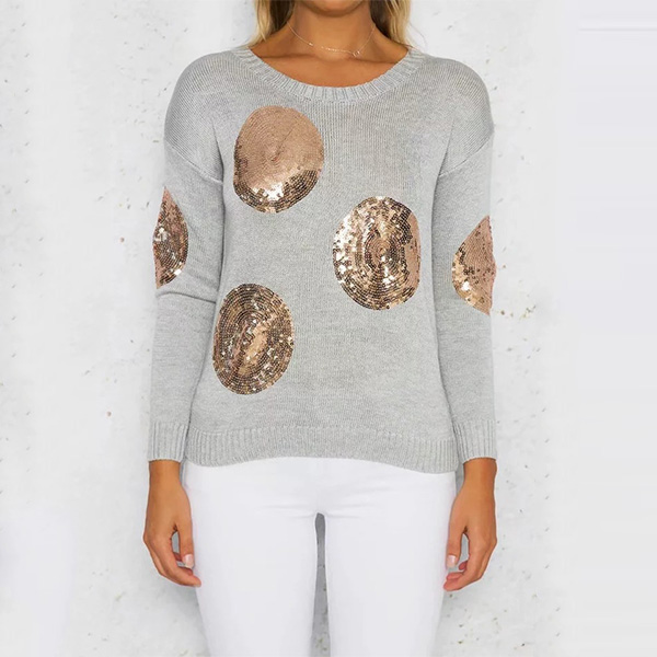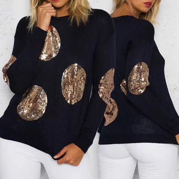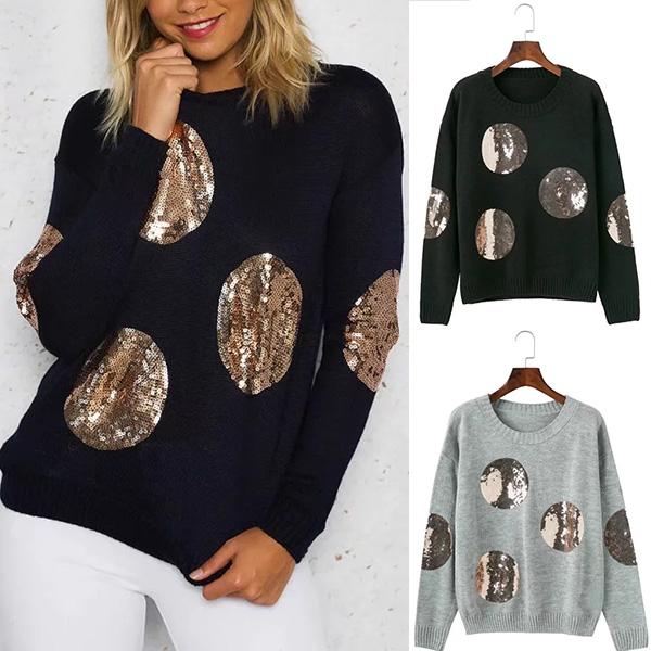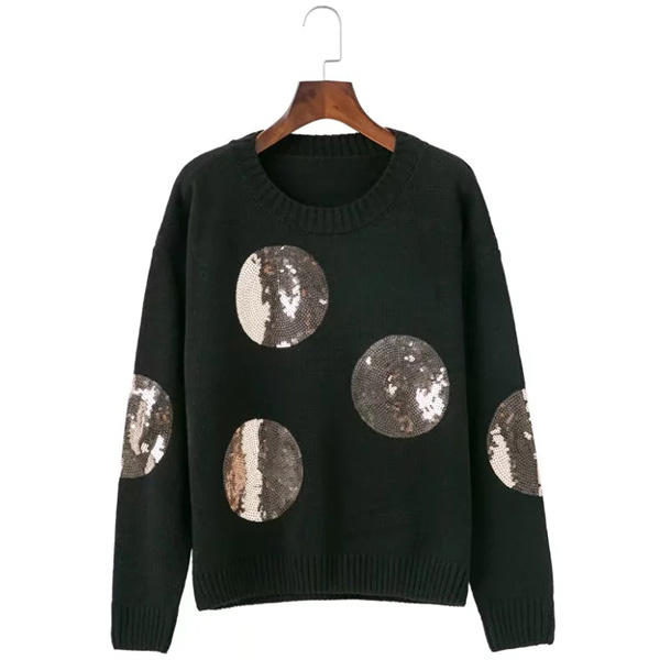 relaxed-fit silhouette,simple,classic and stylish. What's more,the sequin spliced design makes this piece look