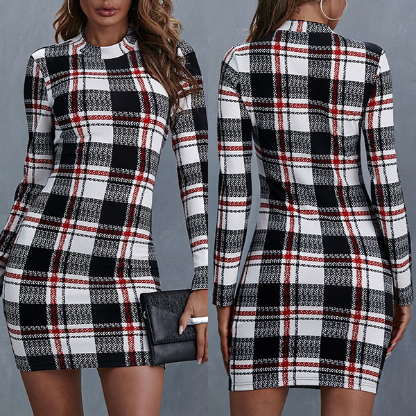 Thanks to the fit silhouette design,your slender figure can have a full display in this dress. The plaid element design makes this piece look so stylish and popular. Finished with long sleeve and round neck design,this is a dress which can be fit for different occasions. So why not invite this piece to your wardrobe?