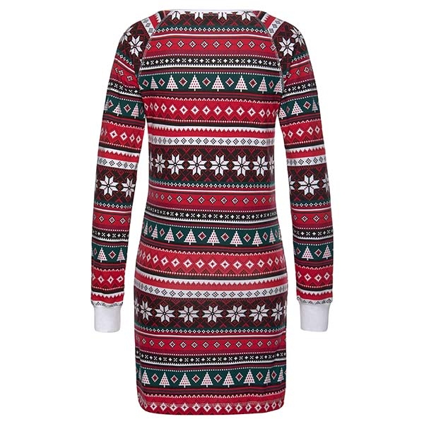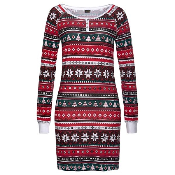 Greet the arrival of the Christmas Day with this beautiful dress. Its chic printed details can add the