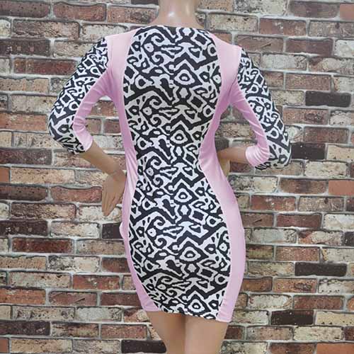 in a classic bodycon silhouette and features a round neckline. It's feminine, figure-hugging, and will