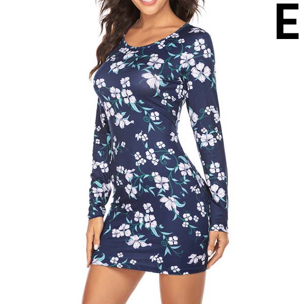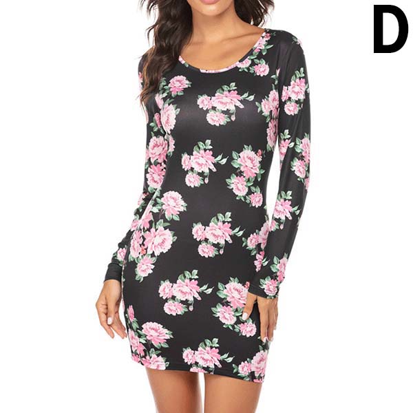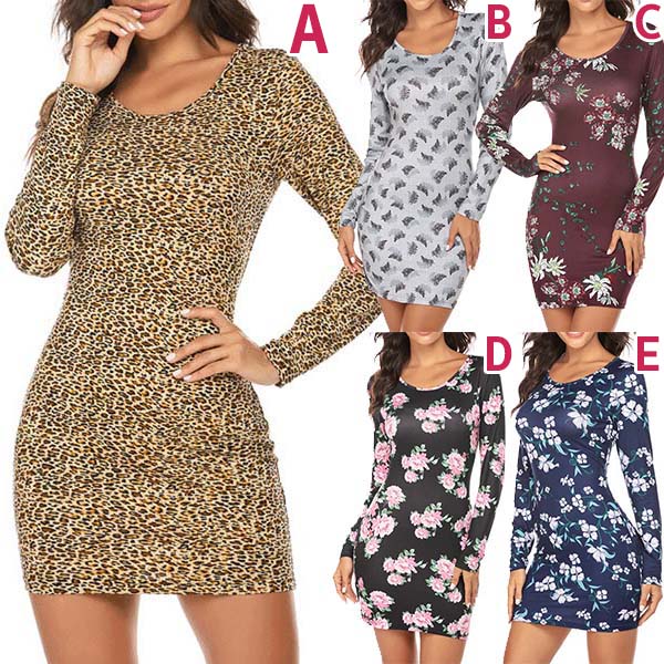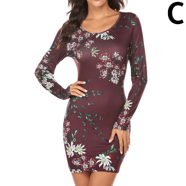 Fashion Long Sleeve Round Neck Slim Fit Printed Dress