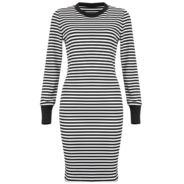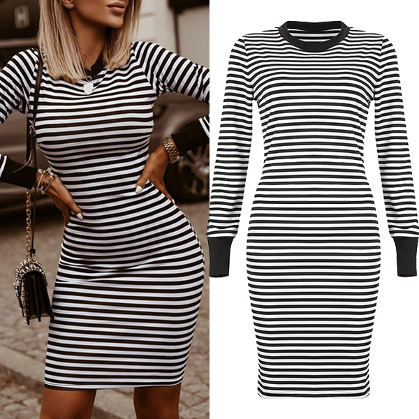 Make your wardrobe more complete by adding this classic yet stylish striped dress. It is finished with long sleeve,round neck and a fit silhouette,this dress can showcase your slender figure while it maintains the comfy. This is a dress which you can wear in different seasons. So why not take interest in it?
