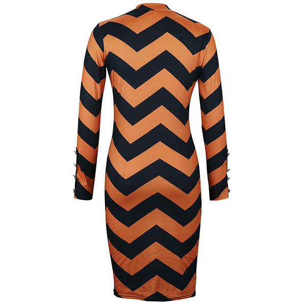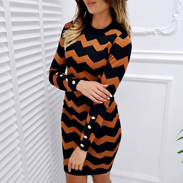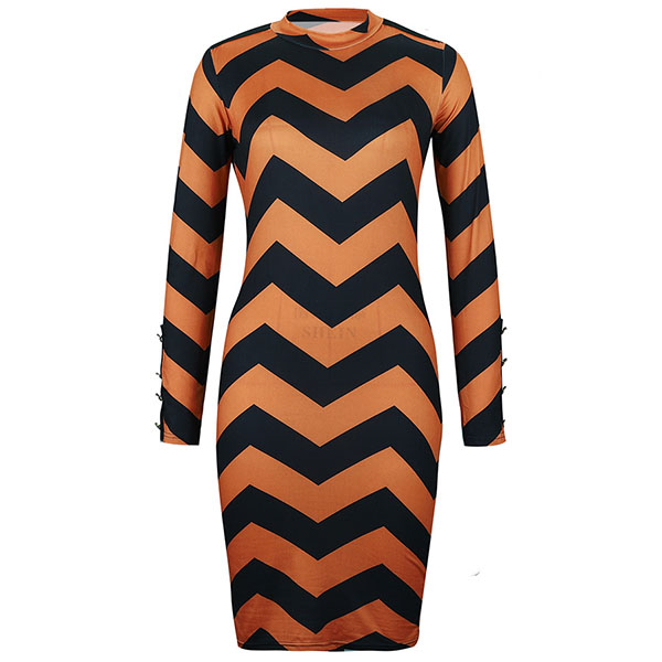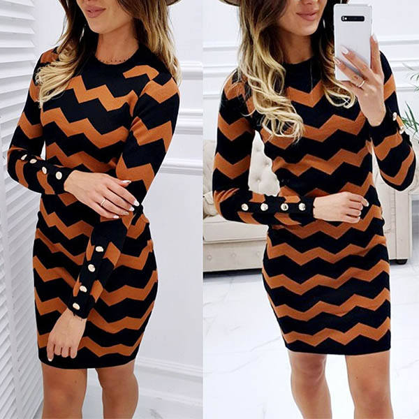This striped dress makes it easy for any girl to look effortlessly charming. The wavy-stripe printed details make this piece look so stylish,popular and eye-catching. Finished with long sleeve,round neck and a fit silhouette,this dress also knows how to portray your slender figure. When the days get cold,this long sleeve dress is worth to be your new darling.