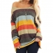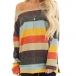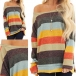 Fashion Long Sleeve Round Neck Slit Hem Colorful Striped T-shirt