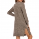 Fashion Long Sleeve Round Neck Slit Hem Knit Dress