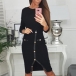 Fashion Long Sleeve Round Neck Slit Hem Slim Fit Dress