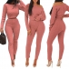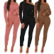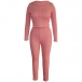 Fashion Long Sleeve Round Neck Solid Color Knit Top + Pants Two-piece Set