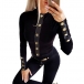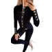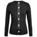 Fashion Long Sleeve Round Neck Solid Color Slim Fit Button T-shirt