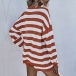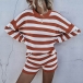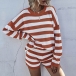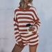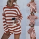 Fashion Long Sleeve Round Neck Striped Knit Top + Shorts Two-piece Set