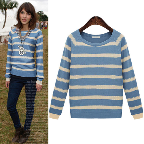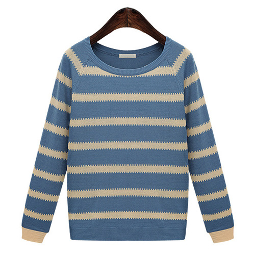 It features striped style,with long sleeve and round neck design. Comfortable to wear