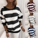 Your simple yet lively personality will be on full display with this shirt. The stripe element design makes this piece look so stylish and popular. Finished with long sleeve and round neck design,this piece is perfect fit for you in these spring and autumn days.