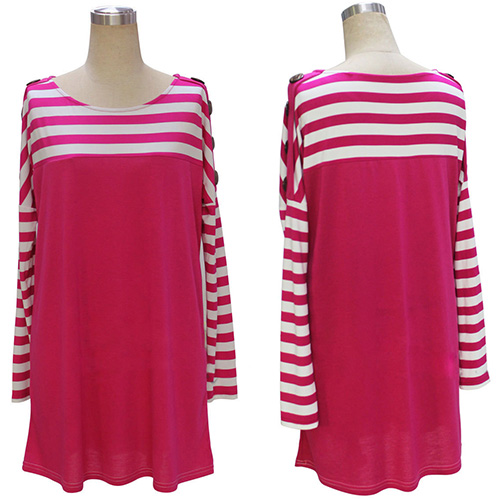 Striped spliced style,chic and eye-catching. Crafted from soft and cozy fabric,with a loose silhouette,