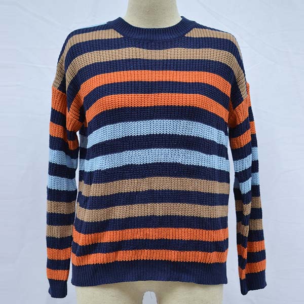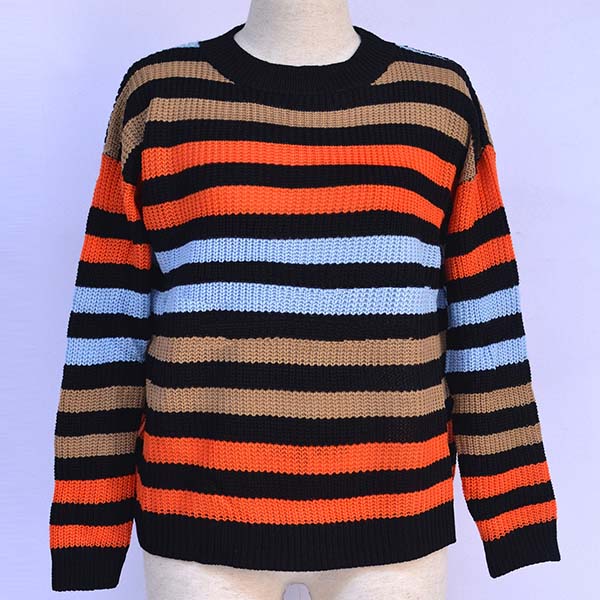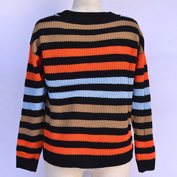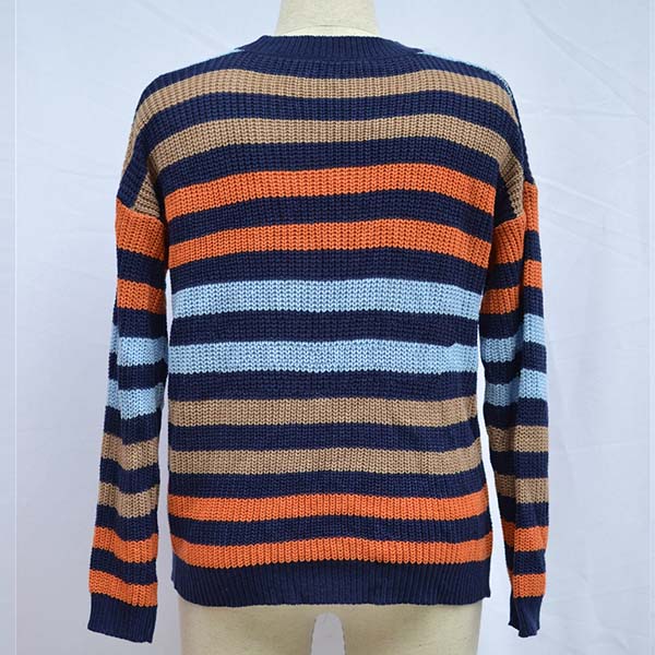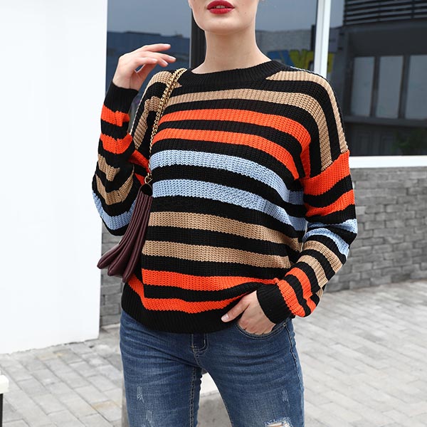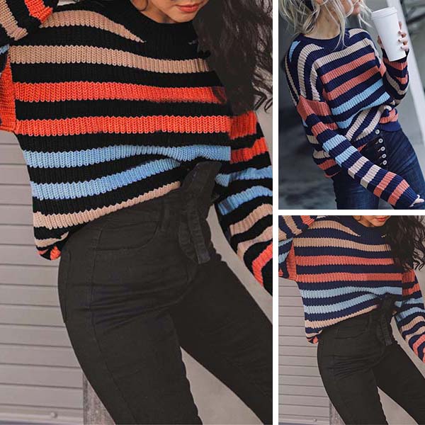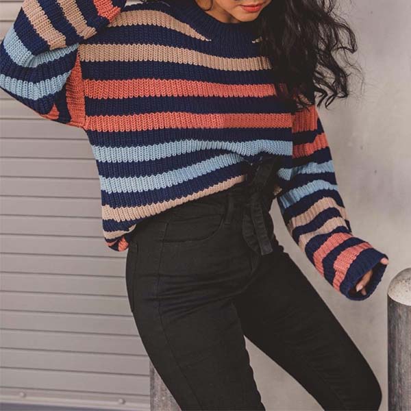 When the weather gets drop,this sweater is yearning for a place in your wardrobe. The striped element design makes this piece look stylish and popular,while the long sleeve and round neck design maintains the classic design style. No matter matching with a shorts,skirt or jeans,you can have a fashionable look!