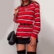 Fashion Long Sleeve Round Neck Striped Sweatshirt Dress