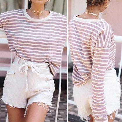 Simple is also a kind of fashion,take this t-shirt for example.Striped style,crafted from soft and breathable fabric,with