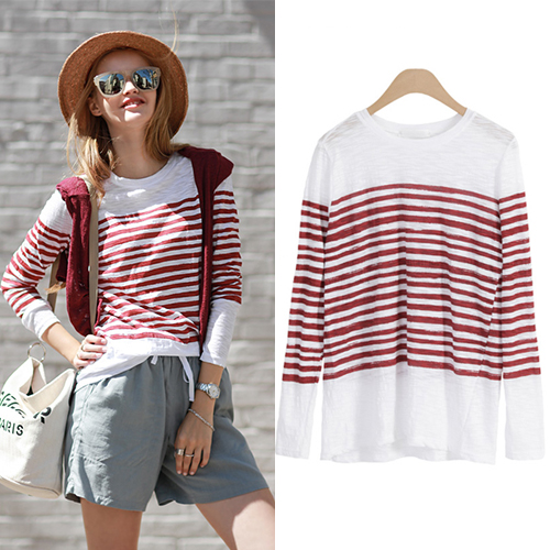 Perfect blends of laid-back and flirty elements, this long-sleeved striped top is your wardrobe essential.