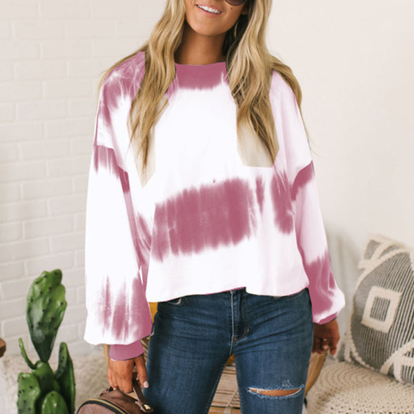 Fashion Long Sleeve Round Neck Tie-dye Printed Loose Sweatshirt
