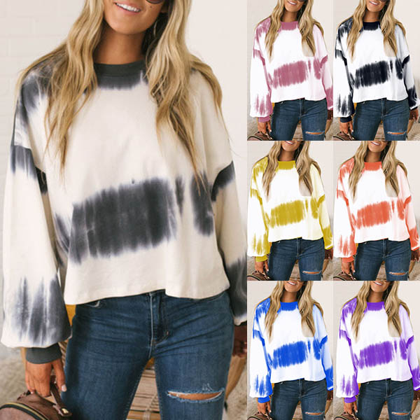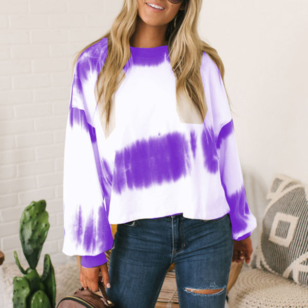 Crafted from soft and breathable fabric,with long sleeve,round neck and a loose silhouette,this sweatshirt can offer you a comfortable day. What makes this piece look so attractive? It owes to the tie-dye printed details. You can slip into this piece to have a casual,relaxed and stylish style.