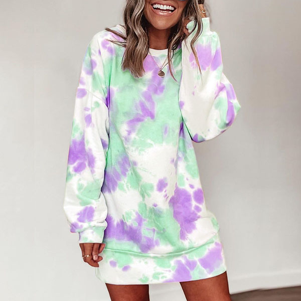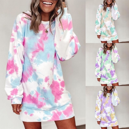 Fashion Long Sleeve Round Neck Tie-dye Printed Sweatshirt Dress