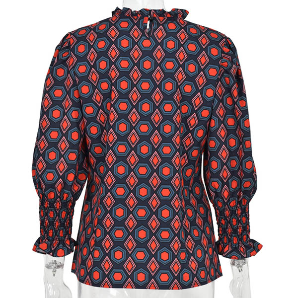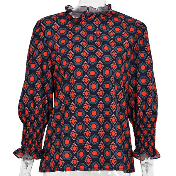 Fashion Long Sleeve Ruffle Stand Collar Printed Blouse
