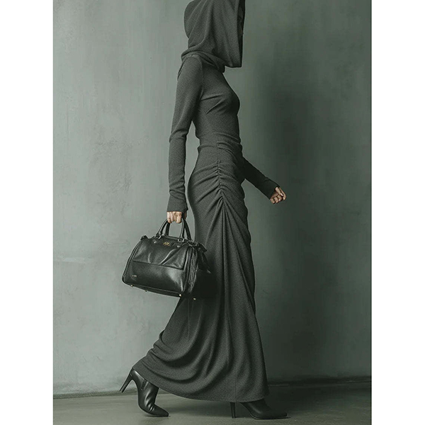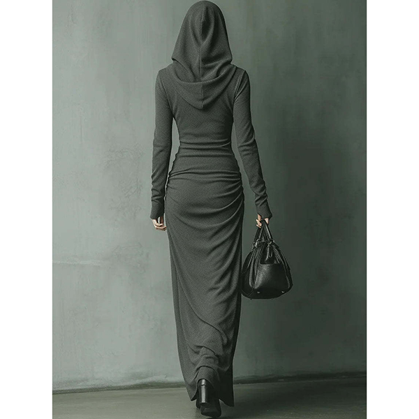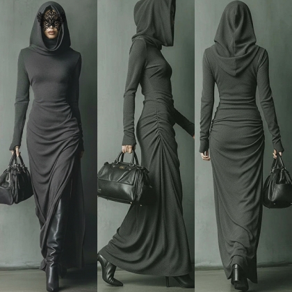 This maxi dress features practical hooded design with elegant side slit and flowing maxi length for modern casual sophistication. Perfect for casual occasions, comfortable styling, or relaxed elegant wear.