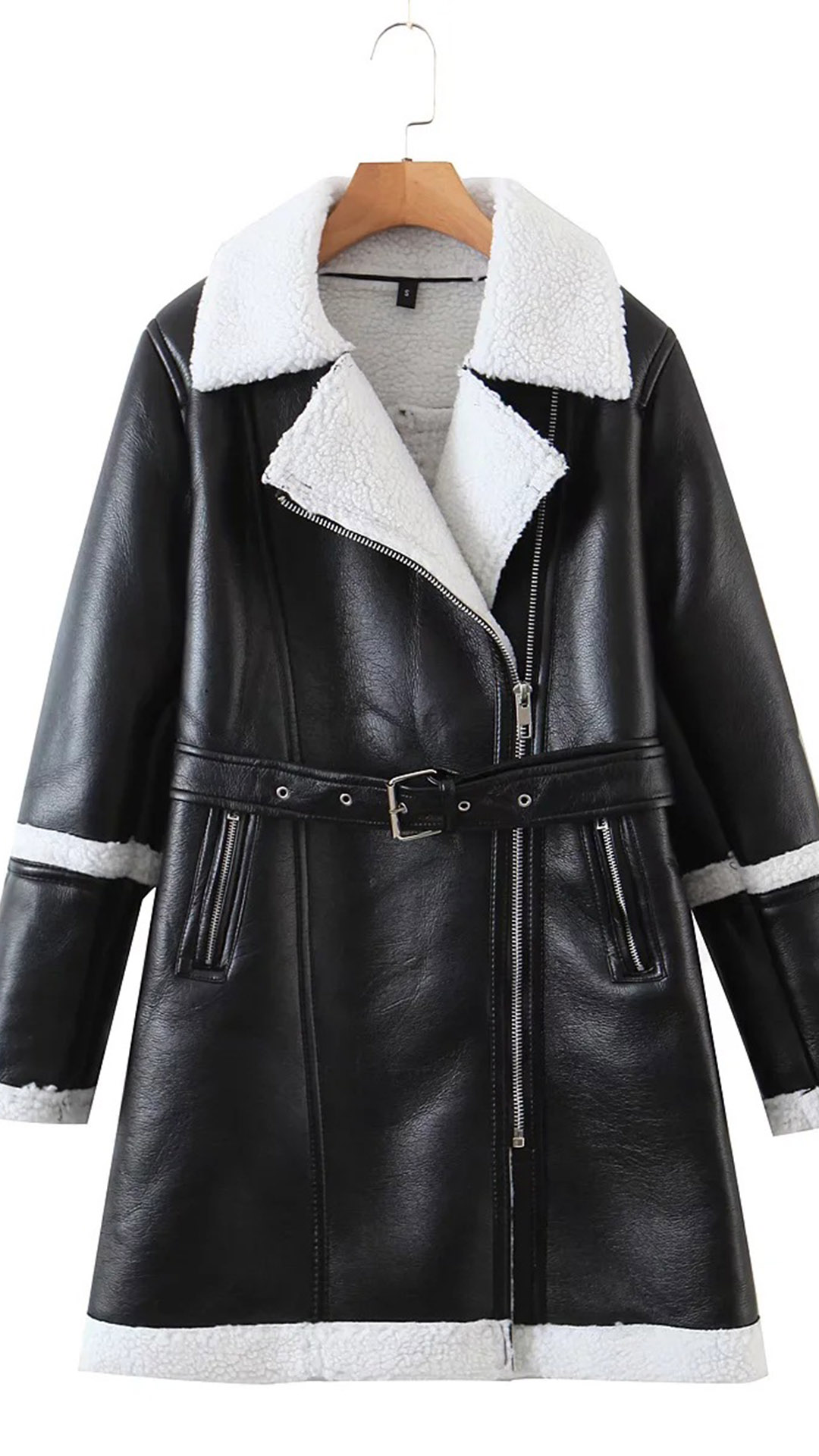 When the days get cold,this PU leather coat would be your wise choice. The plush lining design can give you a warm and comfortable day.What's more,the side-zipper closure design breaks the tradition and dull design style. Comes with a buckle strap design,this coat is worth to be your wardrobe staple in these cold days.