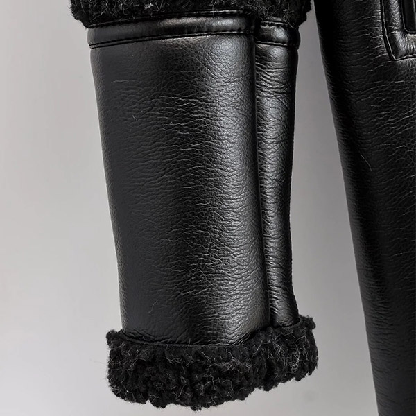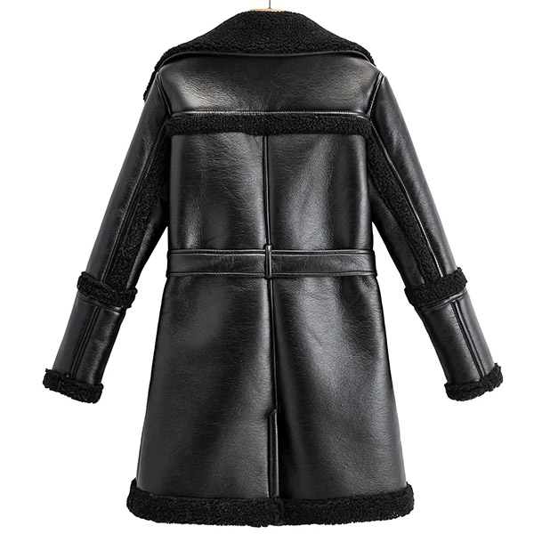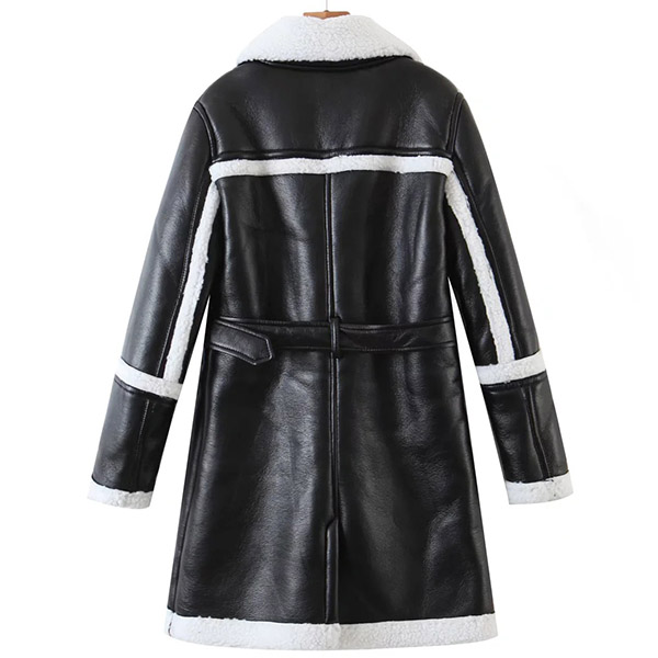 Fashion Long Sleeve Side-zipper Plush Lining PU Leather Coat