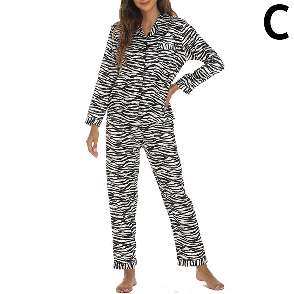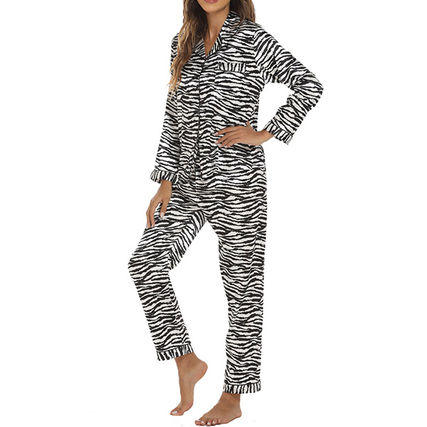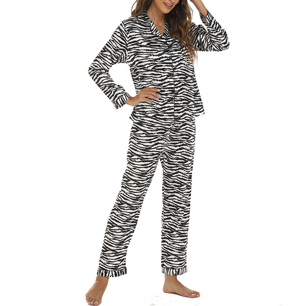 Fashion Long Sleeve Single-breasted Printed Top + Pants Nightwear Two-piece Set