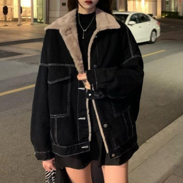 When the cold days hit,this denim coat would be your wise choice. The fit silhouette and waist strap design not only can showcase your figure,but also enrich the design style. Moreover,the plush lining design can give you a warm and comfortable day. You can stay warm yet playful and stylish in this coat.