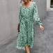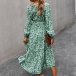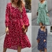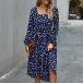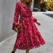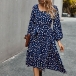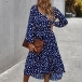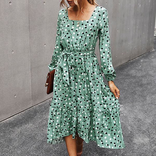 Fashion Long Sleeve Square Collar Ruffle Hem Dots Printed Dress