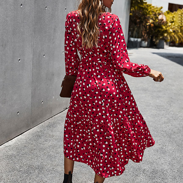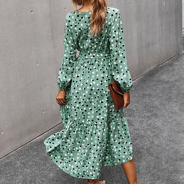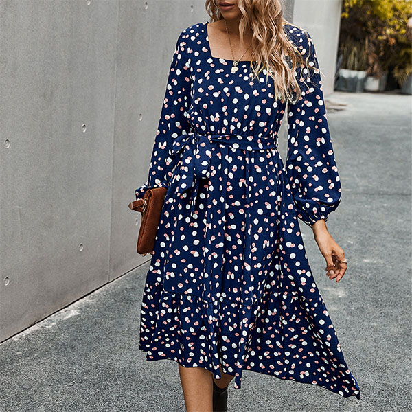 If you are looking for a proper dress for your daytime out or night dating,then look no further than this piece. The dots printed details can make you look more playful and eye-catching,while the square collar and ruffle hem design can enhance your feminine appeal. Add this piece to your wardrobe and it won't let you disappointed!