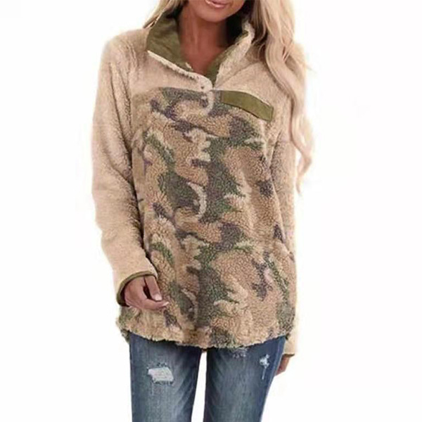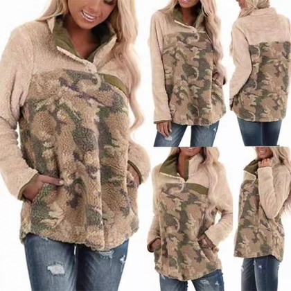 Fashion Long Sleeve Stand Collar Camouflage Printed Plush Sweatshirt