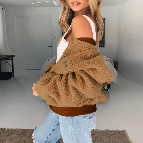 Fashion Long Sleeve Stand Collar Faux Cashmere Coat
